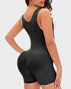 High-waisted design for a seamless fat transfer effect, open-close crotch for convenience, widened shoulder belt for enhanced support, and a secure zipper for a perfect fit.
